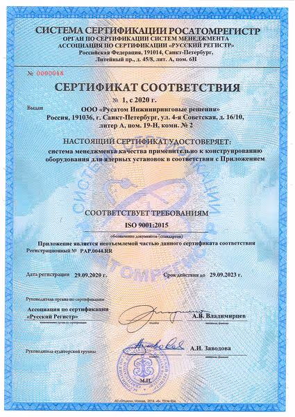 ■ All personnel are certified in accordance with the requirements of federal norms and rules in the field of atomic energy use.